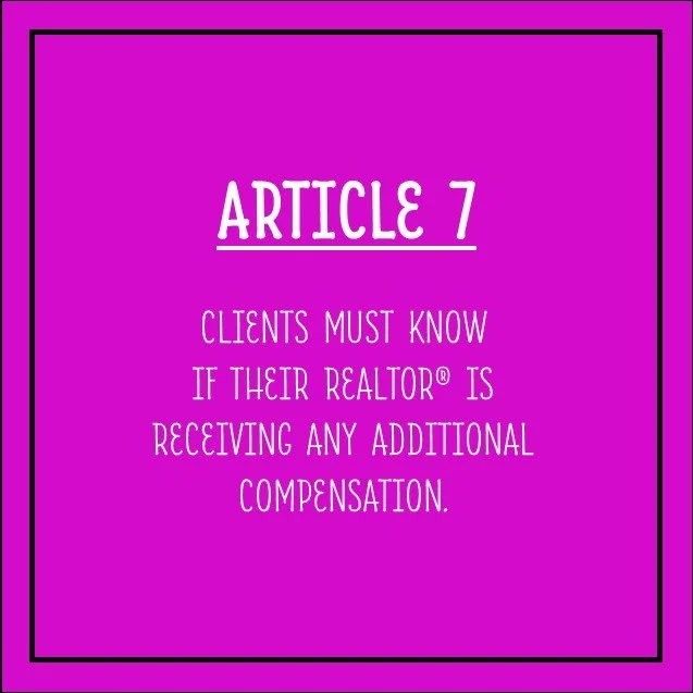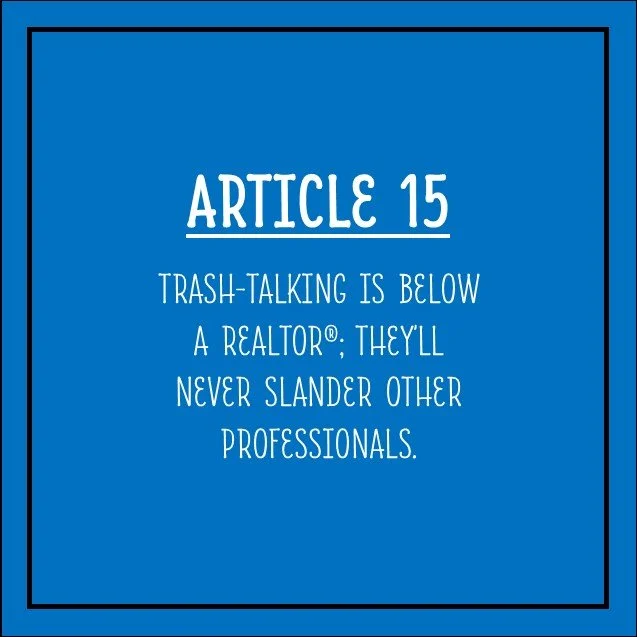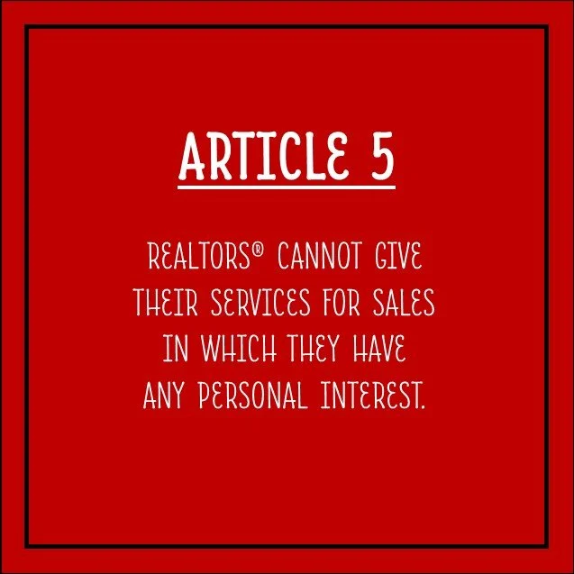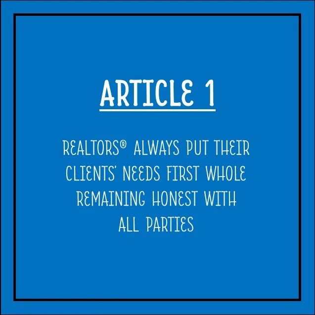When you choose to work with a REALTOR, you are choosing to work with a professional who adheres to a national code of ethics, that keeps your transaction secure and transparent. This code contains 17 main articles, which are spelled out below.